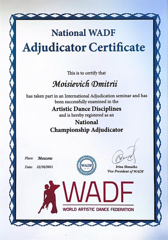 5. Лицензированный судья по артистическому танцу.